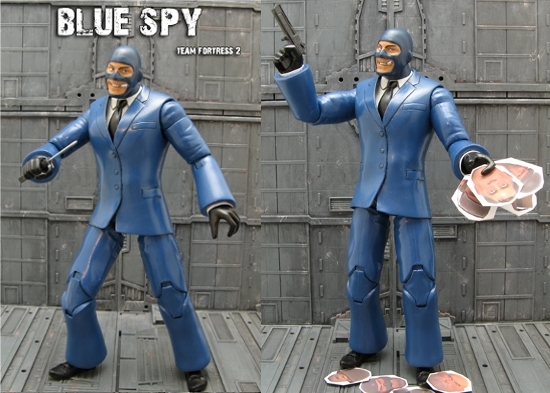 This is just sweet. There’s no other word for it. Ignore the comical knees and slightly more bulky build, that’s the TF2 Spy. He has everything from the smirky grin to his cigerate to his various masks. It’s classic.
