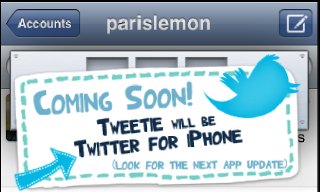 Earlier this month when Twitter bought Atebits, aka Loren Brichter, the maker of the best iPhone Twitter client, Tweetie, they promised that Tweetie wouldn’t die. Instead it was to be turned into Twitter for iPhone. That update now appears to be coming soon.