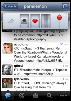 So there you go. Meanwhile, the app I’m more concerned about is Tweetie for the iPad. In its blog post, Twitter promised that was coming “eventually.” The last time I talked to Brichter about it (pre-Twitter sale), all he said to me was, “Can’t say just yet, but I don’t think you’ll be disappointed.” It’d be great to hear something about the new version of Tweetie for Mac too, which Brichter was hard at work on before the acquisition.