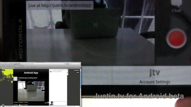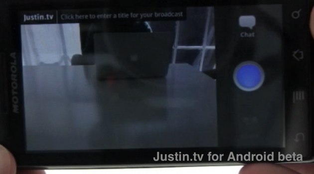 Justin.tv is finally kicking its mobile plans into high gear. Next week, the lifecasting company will release its Android app to beta users. Unlike its iPhone app (released last month), the Android offering will finally let users stream live video with a simple click and simultaneously chat as they shoot. It’s a simple interface, an image of your shot, a chat bar below and three buttons on the right hand side: chat, record and share (see video above). The official version for public consumption is slated for May.