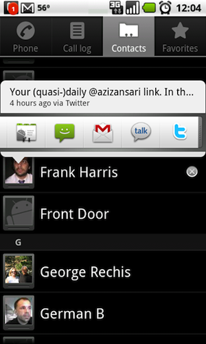 Reading tweets is easy in a bunch of places on your phone. Quickly access your timeline with the home screen widget, view a tweet location on a map, and see your friend’s latest tweet in your phonebook, GoogleTalk list or any application that uses Android’s QuickContact bar.