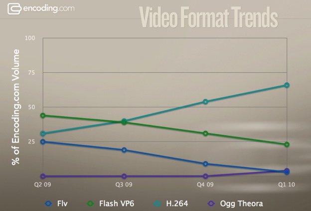 Another data point that Steve Jobs mentions: All YouTube videos are available in H.264, which alone represents 40 percent of all videos on the Web. So these numbers from Encoding don’t seem so crazy.