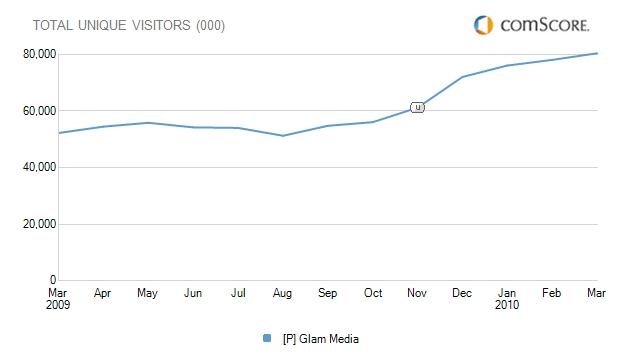 Yahoo was rumored to be courting Jaffe also. But Glam is pre-IPO (they haven’t even filed an S1 yet), and is growing like crazy. Glam cracked Comscore’s top ten U.S. properties for the first time in March, with 80.4 million unique visitors across its network of women-oriented sites. And it still has its own $50 million war chest from its last round of funding in February. Jaffe is the perfect CFO to start spending that money on Glam’s own M&A. And an IPO would add a new currency to that war chest.
