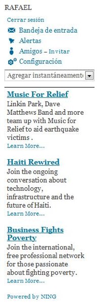 Tomorrow, Ning intends to announce its plans for the future, including new features and pricing plans. And we think we may have just stumbled across one of them: a new advertising product that resembles AdSense. Maybe they will call it NingSense. Update: We’re hearing this actually went live a few months ago and is unrelated to tomorrow’s announcements. It appears to be part of a public service announcement campaign that links to charity sites and cause-oriented Ning networks.