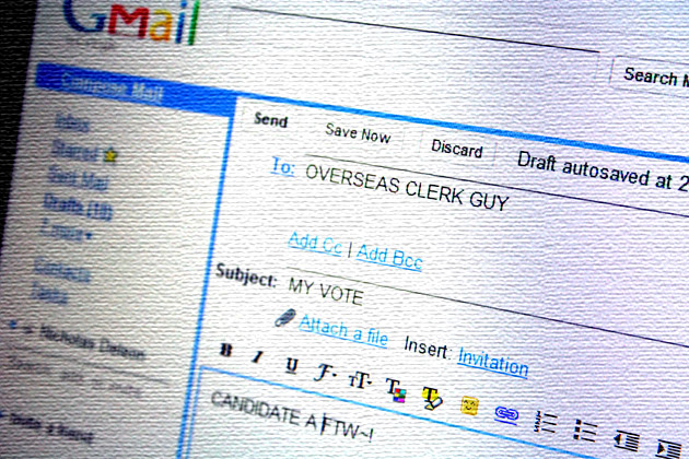 In steps the Internet to the rescue, right? The idea is to have these voters (including military personnel) vote via the Internet in some capacity. Now, whether or not that means you’ll be able to e-mail some overseas county clerk, as it were, with the subject MY VOTE and the body I VOTE FOR CANDIDATE A, HE’S COOL AND STUFF is completely unknown. There’s been a bunch of trial programs to figure our exactly how the votes would be cast. Do you set up a VPN for votes to pass through? Maybe a special Web site with super fancy authentication? No idea.