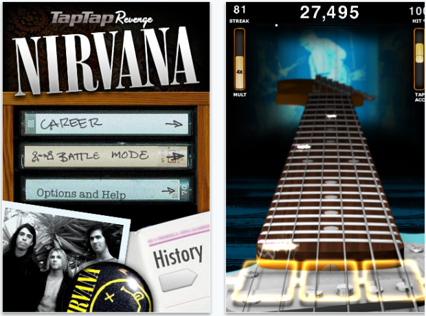 Mobile app developer Tapulous has released a brand new Tap Tap Revenge app for iPhone and iPod touch (iTunes link), this time featuring well-known rock band Nirvana.