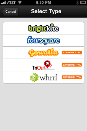 Since the closed beta began, Brightkite has also added two new services to the check-in roster: Whrrl and TriOut. Each of these is still experimental alongside Gowalla, which is currently on Check.in thanks to an API work-around (Gowalla has a read-only API at the moment).