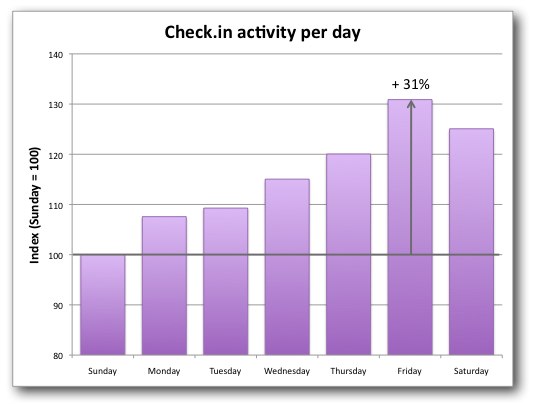 Some other data that Brightkite saw during the beta trial was that people check-in most often on Friday, and least often on Sunday. And most users opt to use two of the check-in services, followed by those who choose to use three. Four and five were much less popular (though Whrrl and TriOut weren’t available the entire time), and one was somewhat popular — though I’m not sure what the point of using check.in is if you’re only going to use it with one service.