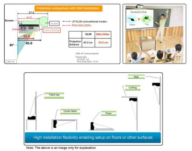 Sanyo says the maximum image size achievable for projections with this model is 110 inches (in WXGA resolution), up 30 inches from the previous model. With this new projector, which can be used both vertically and horizontally, the company also managed to cut the size of the hardware by about 50% (it now measures 321x 170x385mm).
