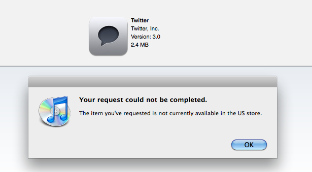 Update: MacStories is saying that some international users have been able to download the app successfully. Feel free to send in pictures if you’re able to!