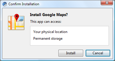 Here’s the app installation pop-up (notice that it informs you what it will need to access):