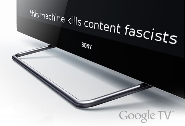And of course Google will have to accommodate the providers, as well: after all, it’s NBC or CBS or FOX that creates, licenses, and owns the content every Google TV viewer will want. It goes both ways — but it’s been a long time since it’s gone any way but the networks’. People have been clicking between channels by hitting the up and down buttons for a good 60 years now: it’s practically inborn. TV providers have been capitalizing on it for exactly as long, but now as bandwidth and accessibility catch up to television and movies as they caught up to music seven or eight years ago, they’ll have to switch their game up if they want to stay afloat. Otherwise they’ll end up like the music industry: a criminally obstinate, publicly mocked pariah, with their asses hanging in the wind, suing the customers they chiseled for half a century, and whining all the way to the poorhouse. Christ, good riddance! Let’s hope Comcast doesn’t end up the same way. Actually, on second thought, I’d pay good money to see that.