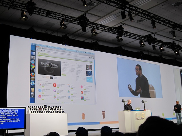 Today at Google I/O, Vic Gundotra introduced Froyo, aka Android 2.2. But he also went a bit beyond Froyo. Coming soon, is a way to download an app through the Android Market over the web — and have it automatically download on your Android devices too. But that’s not all. Gundotra also showed off a new section of the Market — Music. Yes, an iTunes competitor on the web from Google.