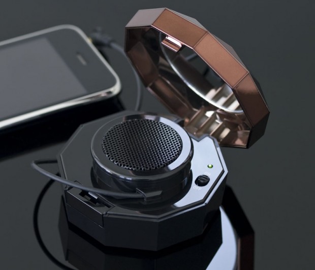 Weighing just 105g, the Bijoué speakers is sized at 78×74×37mm. Audio-Technica doesn’t try to attract geeky female buyers just with the design and size but with a functional hook as well: when opening up the diamond speaker, users will find a small mirror behind the lid.