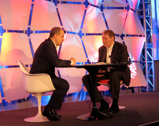 If you hadn’t heard of Russian Internet holding company Digital Sky Technologies one year ago, you probably weren’t alone. But last May — almost exactly one year ago — DST took the tech industry by storm with a $200 million investment in Facebook. It followed that up with a huge investment in Zynga, one in Groupon (and another in Facebook). Today at TechCrunch Disrupt, renowned interviewer Charlie Rose is sitting down with DST co-founder and CEO Yuri Milner to talk about Facebook’s dominance (he introduces the concept of “Zuckerberg’s Law: Every 12-18 months the amount of information being shared between people is doubling”), social gaming, and more.
