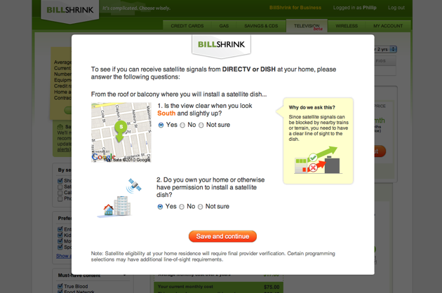 Finally, you tell BillShrink how many TVs you will be hooking up (you can designate options like HDTV and whether or not you want that TV to have a DVR). The whole process takes around two minutes.