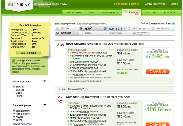 When it comes to billing headaches, there are few industries that can rival the cable companies: from the dizzying array of channel packages to actually figuring out which services you can get at your house, ordering cable or satellite service is often a major pain (and you inevitably walk away from the experience feeling like you’re somehow getting ripped off). Now BillShrink is launching a new feature that looks to make these headaches a thing of the past, putting its cost-cutting engine against a huge database of television service options to help you pick out the best one.
