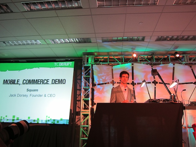 Today at the TechCrunch Disrupt conference in New York, Square co-founder Jack Dorsey took the stage to show a demo of Square running on the iPhone. To do the demo, Dorsey had a good idea: take money from Michael Arrington.