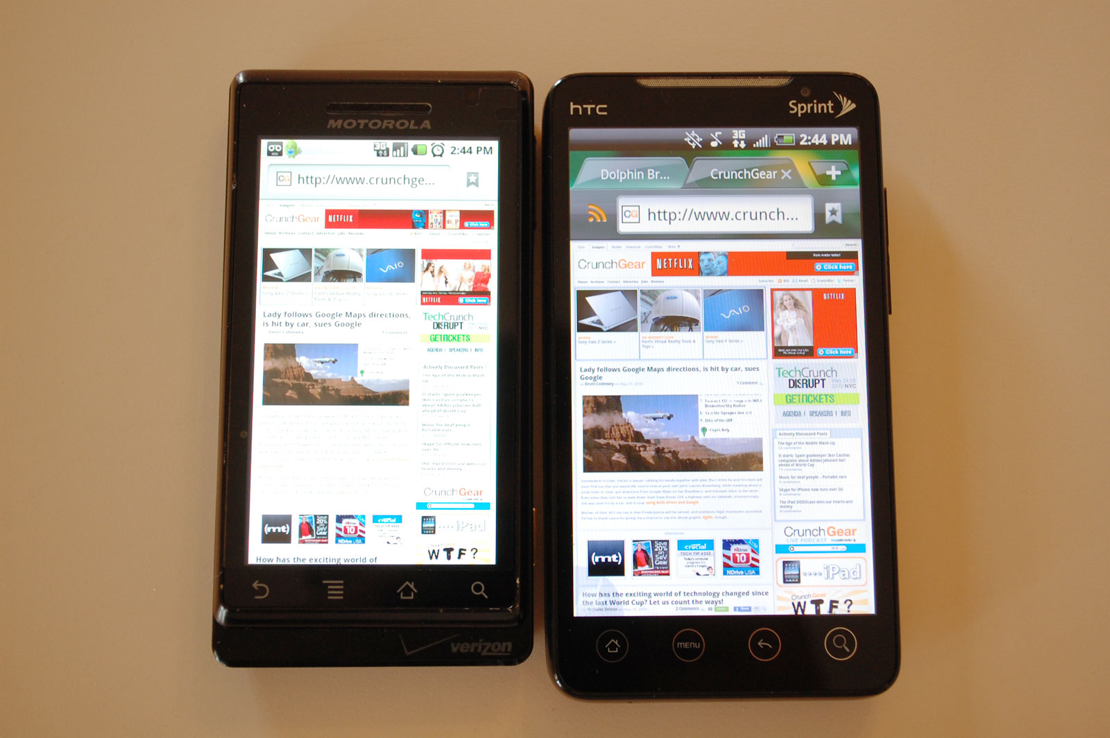 A few 3rd party apps really shine on the large screen, too. Of course games like Robo Defense and Radiant do, but Dolphin Browser HD is a must-have app for the EVO 4G. It really should be the stock browser for the new crop of large screen devices. I must say that it’s a tad slower than the standard Android browser, but it renders sites so beautifully on the large screen that’s a great trade-off. It even offers Chrome-like tabs, which are a great function and argument for the larger screen.