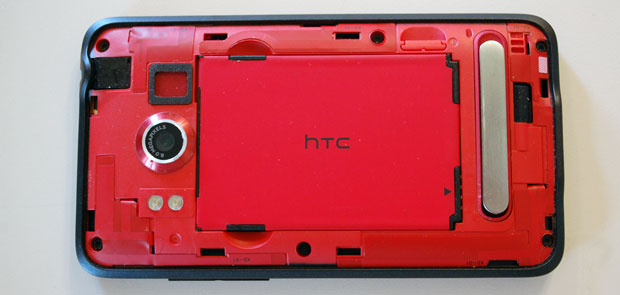 The back panel is held on with a bunch of little plastic clips built onto the rear panel itself. It feels a little cheap when you pry it off with your fingernail. There’s a real chance that one of the little plastic clips will break off if stressed enough, but the back panel is just a thin piece of plastic meaning replacements will probably be cheap. Oh, and the inside looks like a work of modern art. HTC knows how to make things classy.