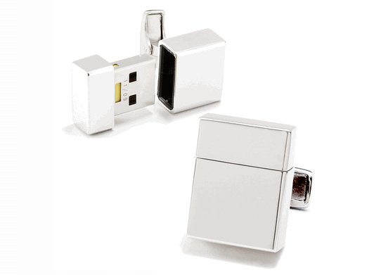 Picture this: You walk into a job interview well dressed sporting these cuff links. The interviewer will likely ask for your resume first thing. So *BAM* you whip your wrist around front and just like James Bond, pull apart your cuff links revealing the hidden flash drive loaded with your resume and funny pictures of cute kitties. It’s a sure fire way to land any job — or lady.