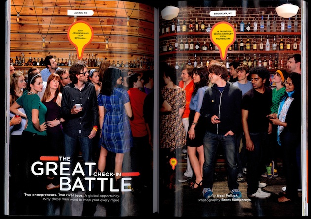 The most obvious rivalry is between Foursquare and Gowalla. Even as the two battled for supremacy at the SXSW conference this year, both sides downplayed the rivalry. But the fact is, there is a rivalry (and they even play it up for next month’s UK edition of Wired magazine — see: pic above). Foursquare and Gowalla don’t talk to one another — in fact, their two leaders, Dennis Crowley and Josh Williams, had never met until a panel I moderated at Where 2.0 after SXSW this year. That’s not to say they hate one another, but they’re also not out there holding location potlucks to discuss how they can work together for the betterment of everyone.