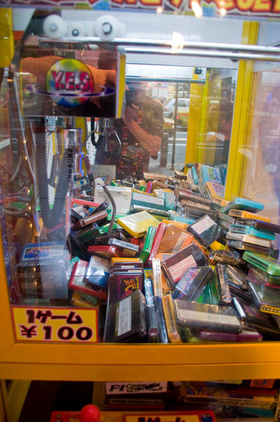 Need yet another reason to go to Akihabara? Check out the Famicom claw machine. For a mere ¥100 (about $1.10) you can take your chance and try and win a cartridge. Of course, you could probably pick up a cartridge around the corner from the machine for about the same price, but where’s the fun in that.