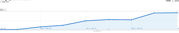 As MacRumors points out today, use of OS X 10.7 within Apple has clearly been on the rise the past few months. I decided to check the TechCrunch logs, and sure enough, we’re seeing the same thing. Hits from the “Intel 10.7” identifier in Google Analytics started coming in October of last year and they’ve been growing ever since. In the past 30 days, we’ve seen a roughly 25% increase (from the previous 30 days) in visits. That said, the jump from March to April was much greater (nearly 100%). Apple is clearly expanding the work on the new OS, but is it ready to be unveiled?