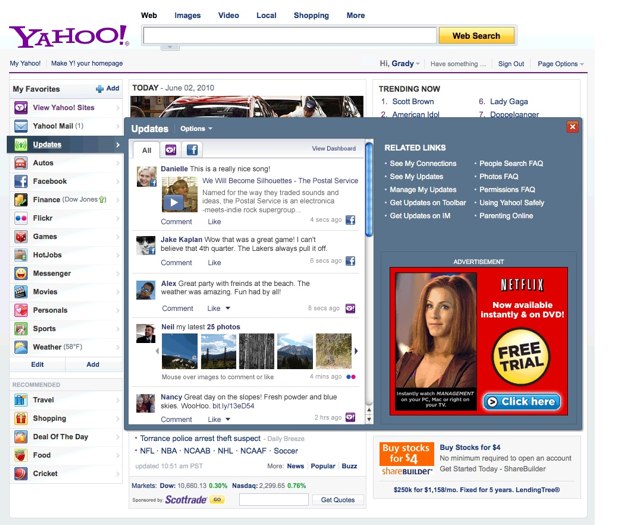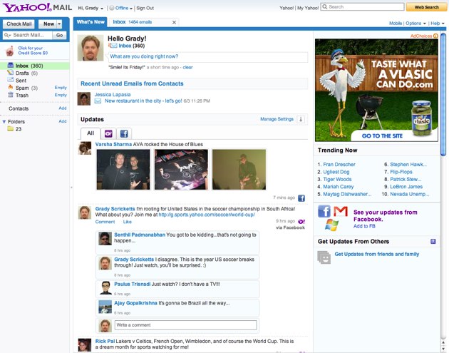 Facebook Integration – Yahoo! has reached an important milestone in its partnership with Facebook. Starting globally today, people who use both Yahoo! and Facebook can link their accounts and view and share updates with friends across both networks. People who connect their accounts can consume their Facebook newsfeed on the Yahoo! homepage and in Yahoo! Mail and other Yahoo! sites and services. Additionally, people who create and share content on Yahoo! sites – including Yahoo! News, Yahoo! Sports, Flickr, and many Yahoo! entertainment sites, such as omg!, Yahoo! TV, and Yahoo! Movies – can easily share their contributions across Facebook. Additional integrations will be ongoing.