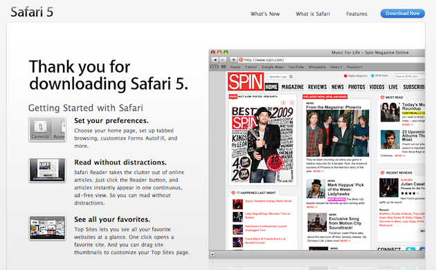 While it’s nowhere to be found on Apple’s Safari site yet, nor is it available yet in Software update, the new version is apparently coming today. So what’s in it? Well, like the new iPhone OS, it will have a new option to make Bing the built-in search engine. More significantly, the new version also brings Safari Extensions support — a new feature which will allow you to “customize and enhance the browsing experience.” This will allow the browser, which Apple says is used by 200 million devices worldwide (because they’re counting iPhones and iPads too), to match a key functionality of the rival browsers Chrome and Firefox.