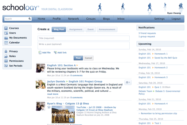 Schoology’s mission is to leverage the familiarity of popular social media tools to improve communication and collaboration inside and outside of the classroom. Schoology provides a full suite of learning management tools, including an online gradebook, attendance, test/quizzes, discussion boards, blogs, homework dropboxes, and collaborative course and group pages.
