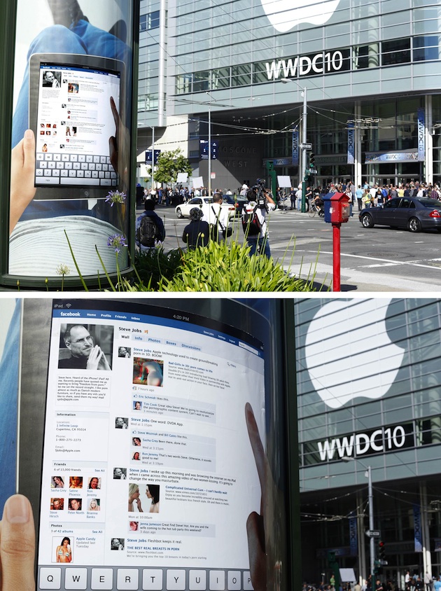 If you’ve been to San Francisco in the past few months, you’ll know that the entire city is plastered with iPad advertisements. The situation is even more out of control now that it’s WWDC week and thousands of Apple developers are in from out of town. So one rogue group of artists decided to have a little fun.