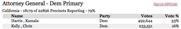Kelly was spearheading a well-funded campaign, investing roughly $12 million of his personal fortune. The battle between Harris and Kelly had intensified in the last few months, with each going for the jugular and launching highly charged, negative attacks. Kelly criticized Harris’ conviction rate as district attorney and her role in the police crime lab controversy, Harris questioned Kelly’s campaign financing (which involved Facebook stock) and his role as Facebook’s privacy honcho. As Harris wrote in a campaign statement: “Was Kelly simply a fox guarding the hen house at Facebook?…If Kelly couldn’t stand up to Facebook CEO Mark Zuckerberg on behalf of Facebook users, how on earth can Californians trust Kelly to go to bat on their behalf as attorney general?”