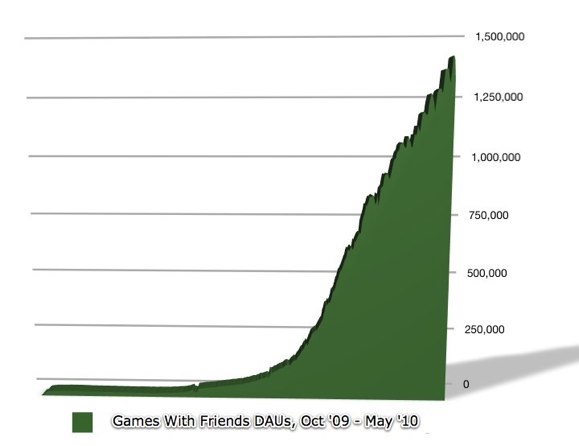 Finally, in July 2009, the studio released Words With Friends. At the time they had no idea it would become a hit — they took a small $200K seed round from friends and family and started working on an ngmoco title called We Rule (which they didn’t own full rights to) to make sure they could keep paying the bills. As they worked on We Rule, Words With Friends did fairly well but wasn’t exactly surging.