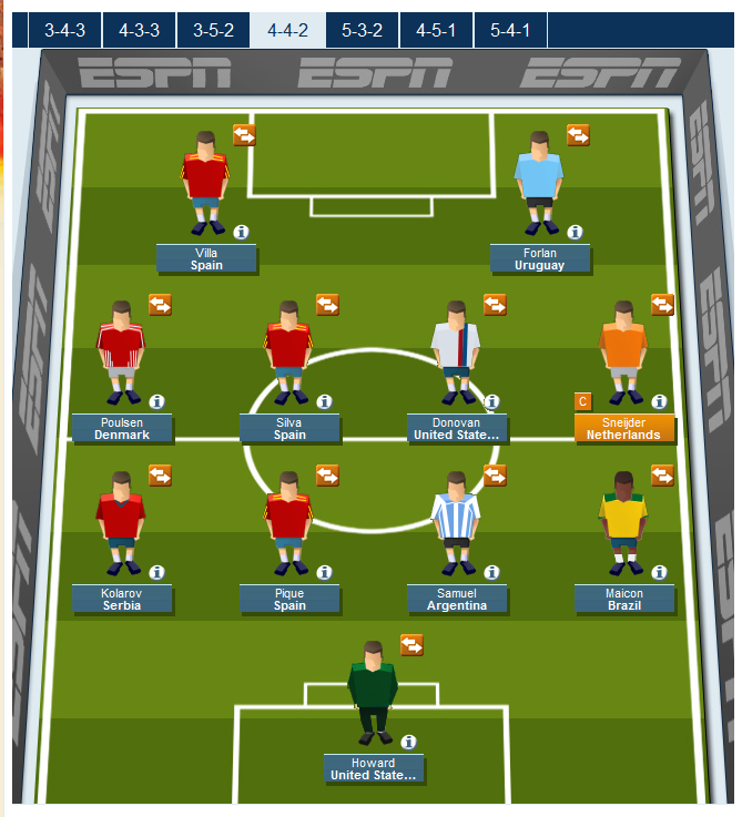 I only picked out two here because, you know, I don’t have all day to list 8 million Apps. Just search “world cup” on the App Store and the Android Market and you should be cool. I looked at a bunch of them are they’re all sorta the same: live scores and the like.