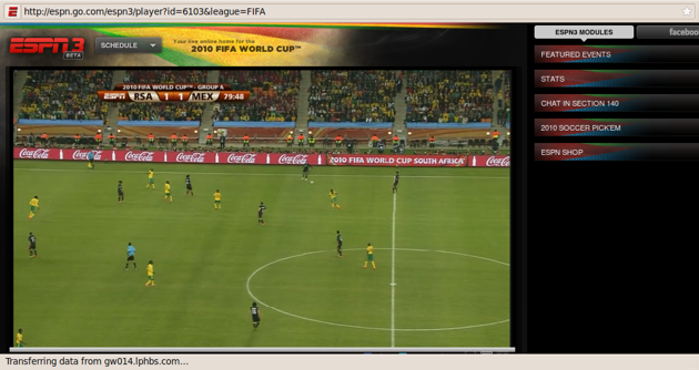 Here’s a slight update to my World Cup “all you need to know” post from yesterday. I completely forgot to mention that ESPN3.com is streaming all the games live and totally for free. No need to mess around with shady P2P streams.