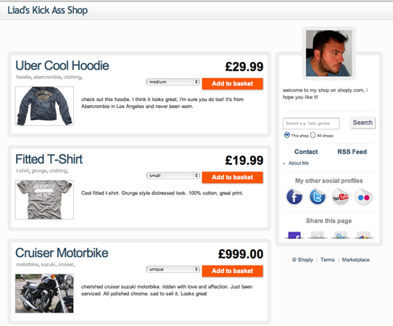 Shoply also lets sellers integrate their virtual shops with social networks like Twitter and Facebook, allowing people to Tweet products out and use Facebook Connect to push updates. The ambition is to create a virtual shopping mall of sorts, where users can come to Shoply and try to find an item by doing a keyword search in the marketplace. And Shoply handles the SEO for the shop owners. The idea sounds great in theory, but it may be a challenge for Shoply to attract seller who already have an established base on Amazon, eBay and even Etsy. At the moment, Shoply has under 30 shops on the site. I think for the startup to start standing apart from these established competitors, it may have push a more disruptive model, such as such as that of marketplace on Facebook. Shoply’s founder Liad Shababo says that the site currently offers this functionality, which will compete with fellow Facebook marketplace Payvment.