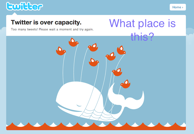 Earlier today, Twitter rolled out a pretty killer new feature: Place support for geolocation. With it, you can tag your tweets to a specific place you’re at, or pipe in your check-ins from Foursquare and Gowalla to do the same thing. Tonight, Twitter can’t seem to find anything, let alone the new Places. The service has now been completely down for over an hour.