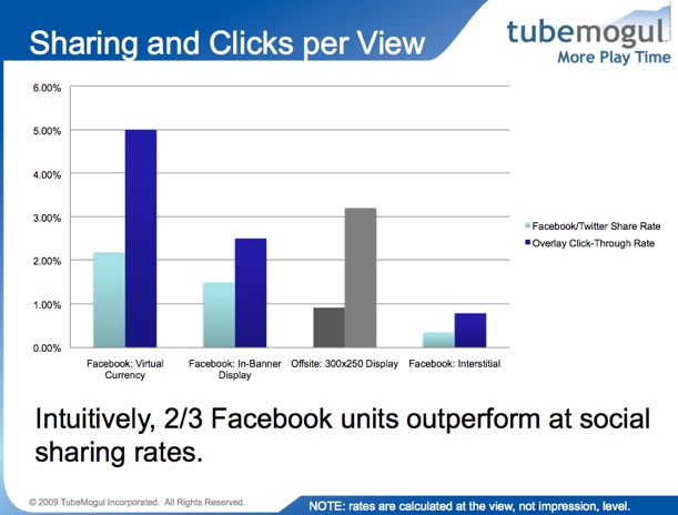 “The click-through and sharing rates appear to be higher on Facebook,” says Wilson. The click-through rate for ads in Facebook games linked to virtual currency is 5 percent, and about 2 percent of those video ads are shared on Facebook and Twitter. In comparison, video ads across the rest of the Web have click-through rates just above 3 percent, and social sharing rates just below 1 percent. Even Facebook banner video ads show higher sharing rates (but lower average click-throughs) than on other sites.