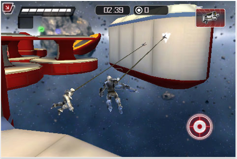 EXO-Planet, which was an iPad launch title but wasn’t available on the iPhone or iPod Touch until now, is a third-person shooter set in space, with a nifty grappling hook mechanic that lets players fling themselves to the other side of a room with one tap. Gameplay is primarily multiplayer — hit Deathmatch or Capture the Flag, and the game’s matchmaking system will usually have you playing a game in a few seconds. This update also introduces a single player time trial mode.