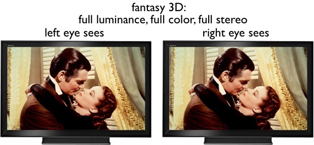 As you can see, it’s quite a list, though some of these flaws are being remedied. One wonders why so many companies have gotten on board with such a thing. Well, it offers much more opportunity for making money, for one thing, and they don’t have to modify their screens in any way other than increasing the refresh rate, for another —saving them precious R&D money. My personal opinion is this technology will remain on top until someone’s skunk works research team produces a viable alternative in the form of circular-polarized TV display filters that don’t affect the image too much.