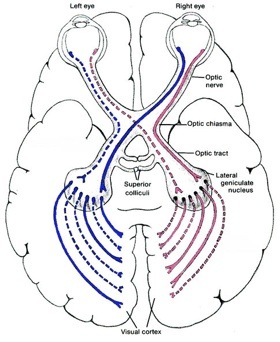 Once the two images have been presented to your retinas, they pass back through the optic nerve to various visual systems, where an incredibly robust real-time analysis of the raw data is performed by several areas of the brain at once. Some areas look for straight lines, some for motion, some perform shortcut operations based on experience and tell you that yes indeed, the person did go behind that wall, they did not disappear into the wall, and that sort of thing. Eventually (within perhaps 50 milliseconds) all this information filters up into your consciousness and you are aware of color, depth, movement, patterns, and distinct objects within your field of view, informed mainly by the differences between the images hitting each of your retinas. It’s important to note that vision is a learned process, and these areas in your visual cortex are “programmed” by experience as much as by anatomy and, for lack of a better term, instinct.