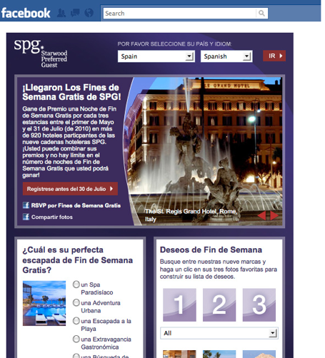 Starwood Hotels and Resorts are one of the first brands to implement the new feature, and is now serving customized language and content on its Starwood Preferred Guest (SPG) Facebook page to guests from the U.S., Spain, Germany and China.