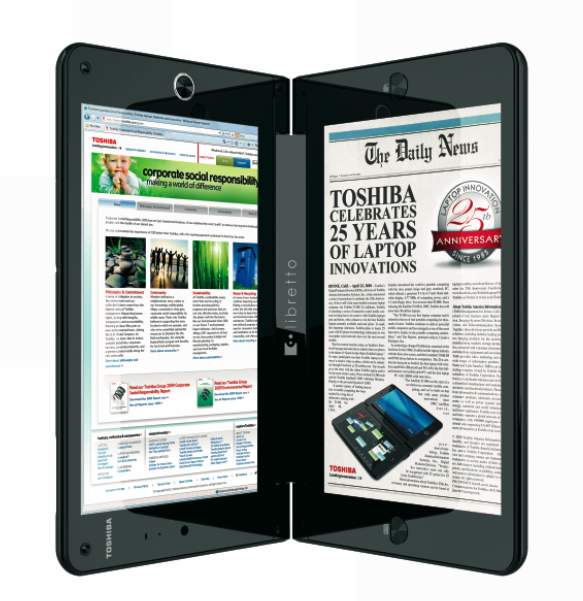 IRVINE, Calif. – June 21, 2010 – Embodying a quarter-century of innovation, Toshiba’s Digital Products Division (DPD), a division of Toshiba America Information Systems, Inc., today announced the libretto® W100, a next-gen ultra-mobile concept PC. This limited-edition 25th Anniversary device goes beyond slates, netbooks and smartphones to deliver something more: a full Windows® 7 experience that can be enjoyed across two multi-touch touch screens.