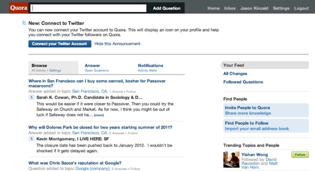 Their biggest challenge is about to begin. Quora has generated attention not just because of its slick interface, but because of the extremely high quality of its answers up until this point — it isn’t unusual for someone to ask a question and have it answered by a top expert in the field within a matter of hours (or less). Likewise, questions about various Internet companies often attract answers from longtime employees. The big question now is whether or not Quora will be able to maintain that quality as it deals with an influx of new users. When we asked about this during our interview, here’s what they said: