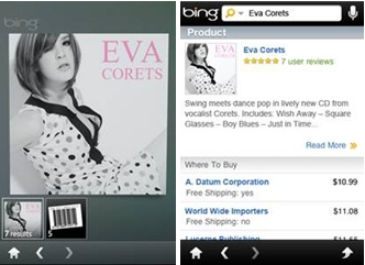 The Google Goggles-type feature that I referred to earlier is called Visual Scanning in Redmond. The Bing app now lets you scan barcodes and cover art on the fly using your iPhone camera. Users can thus scan the barcode of any product or the cover art of books, CDs, DVDs, or video games, after which they will see descriptions and occasionally also reviews, prices and links to merchant websites.