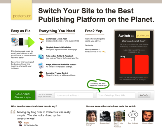 For Posterous, this is certainly an impressive campaign. Agarwal and Pearson say that this has been something the team has been working on for months. Clearly, Posterous has ambitions of becoming the defacto posting platform and is now making it significantly easier for users to switch. While the company doesn’t reveal number on how many blogs it hosts, Pearson saud that the site is growing in userbase by 20 to 25 percent each month. A little aggressive marketing could speed that growth up significantly.