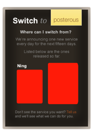 For the next 15 days, Posterous will announce a different service daily that will allow you to transfer your account, blog, videos, images and more over to the simple blogging site for free. First up: Ning. To switch, you simple give Posterous the URL of the Ning blog you want to move and your email address and Posterous will send you an email when they are done copying a site. You don’t have to have a pre-existing account with Posterous either to make the switch.