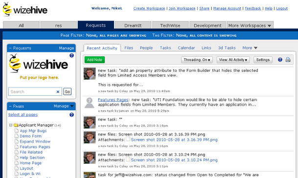 WizeHive’s interface has been streamlined to be easier to use. You can now include up to five workspace that can be included in clickable tabs, with a “more” button available for links to additional workspaces. Generally, tabs in the interface have become consolidated for a cleaner look and feel.