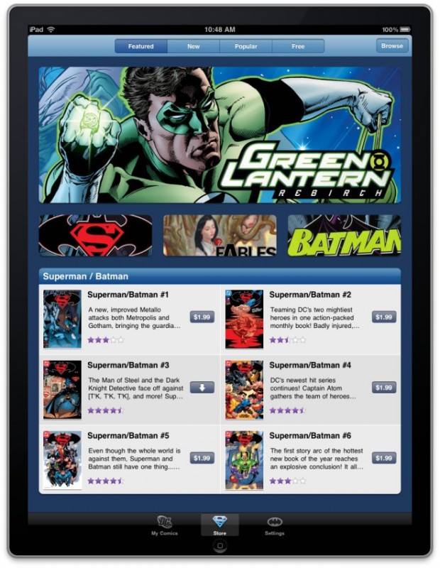 Not content to let Marvel have all the fun, DC Comics just released their iPad and Sony PSP apps. The apps allow for in-app comic purchase and download. Comics will cost $1 to $3 per issue.